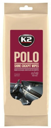 A legjobb minőségű nedves törlőkendők az autó tisztaságának megőrzéséhez. , , K2 POLO SHINE WIPES nedves törlőkendők a műszerfal és mindenféle műanyag elem tisztításához és karbantartásához. Gyorsan és egyszerűen eltávolítják a szennyeződéseket és a port, így kissé elsötétült és fényes felület marad. Védenek az UV-sugarak káros hatásaitól, tovább por t