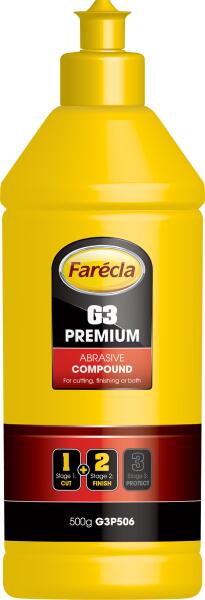 A G3 Premium Abrasive Compound az egyetlen olyan vegyület, amely a P1500 vagy a finomabb csiszolási jelek végleges eltávolításához szükséges minden modern festékrendszerből, miközben örvénymentes, magasfényű felületet eredményez, csökkentve a termékfogyasztást. Használat közben a G3 Premium átlátszó tulajdonsággal rendelkezik, amely lehetővé teszi a kezelő számára,