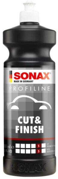 SONAX 225300 Profiline Cut&Finish silikonfrei, polírpaszta, 1 lit Innovatív politúr, intenzív koptató hatása gyorsan eltávolítja a hibákat, mint például a por zárványok, festékköd és csiszolás nyomok az újrafújást követően. Nagy koptató hatást biztosít magas fokú ragyogással egyidejűleg, tartós, kiemelkedő simító tulajdonságokkal. Ideális polírozó a csiszolt
