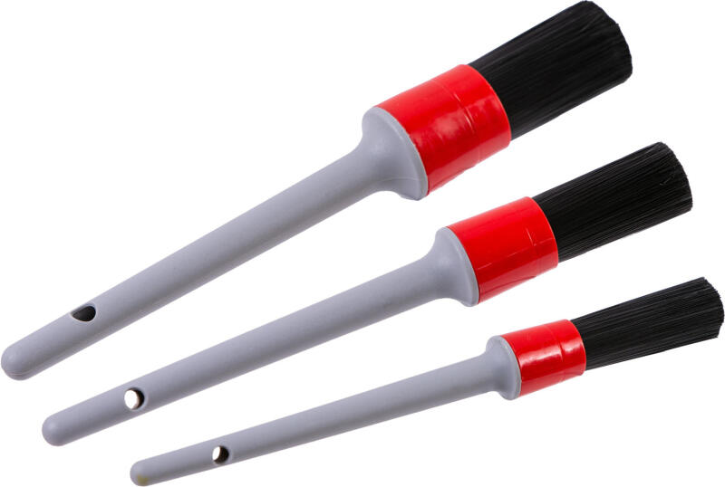 Strapabíró műszálból készült autóápolási ecset készlet. A kerek kefék a jármű külső-belső tisztításához remekül használhatók, a nehezen elérhető helyek tisztítására is tökéletesen alkalmasak. Szellőzőnyílásoknál, ajtókilincseknél, műszerfalon, csomagtérben, ülések mellett és között, középkonzolon, nagyszerű segítség a koszolódó rések rendszeres t