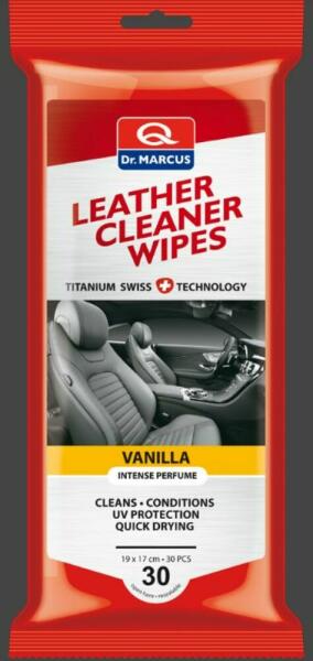 A Dr. Marcus bőrtisztító nedves törlőkendő tisztítja és ápolja a bőrüléseket, illetve minden bőrből készült burkolatot az autó belső terében. Mindenfajta szennyeződés eltávolítására alkalmas. Azonnal tisztít és gyorsan szárad, ezáltal rövid időn belül újra használható a felület. Kellemes vaníilia illatot hagy maga után. A csomag 30 db nedves kendőt tartalmaz.