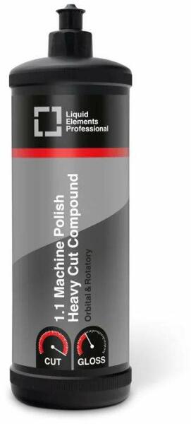 Liquid Elements 1.1 Machine Polish Heavy Cut A Liquid Elements 1.1 Machine Polish Heavy Cut erősen abraziv, koptató hatású polírozó vegyület, amelyet a legújabb önlebomló csiszolószemcsékkel és innovatív adalékanyagokkal (nem töltőanyagokkal) fejlesztettek ki, hogy biztosítsák az első osztályú festékápolást. Ennek eredménye a hosszan tartó és szinte pormentes megmunkál