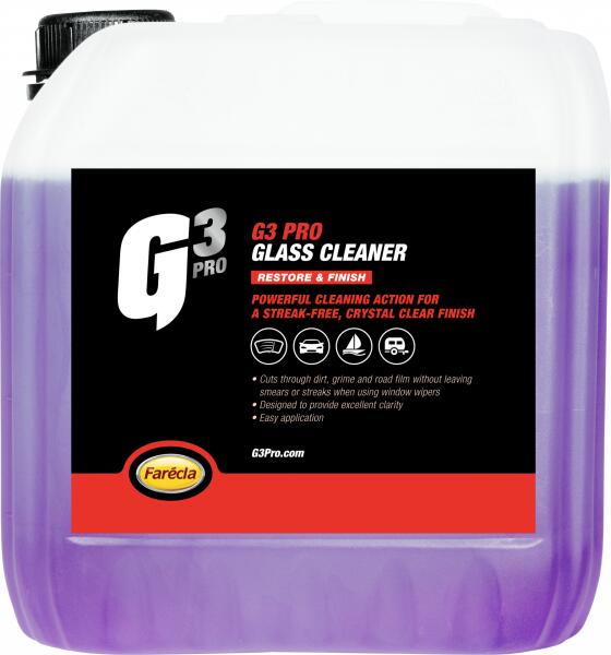 A G3 Pro Glass Cleaner egy erőteljes, nagy teljesítményű tisztító, amely átvágja a szennyeződéseket, szennyeződéseket és útréteget anélkül, hogy foltokat, csíkokat vagy szivárványt hagyna az ablaktörlő használatakor. Úgy tervezték, hogy kiváló tisztaságot biztosítson. Használat: Enyhén párásítsa be az összes ablakot, a külső tükröket és a visszajelzőket Óv