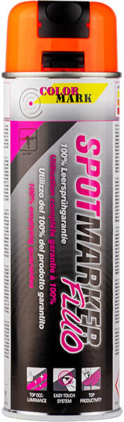 Motip 201493 SpotMarker jelölõfesték, fluoreszkáló narancs, 500ml A Color Mark jelölõ festék a Motip hírnevének megfelelõen kiváló minõséget képvisel. Tulajdonságai: -Gyorsan szárad, 20 °C-ig felhasználható. -Idõjárás és UV álló. -Ideiglenes jelölésre alkalmas kb. 9 hónapig tartós. -Könnyű, egyszerű használata miatt széles a felhasználási területe. -Speci