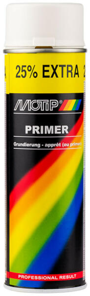 Motip 04056 Primer, alapozó spray, fehér, 500ml Jó töltőképességű, gyorsan száradó, szürke színű felület kiegyenlítő alapozó. Alkalmas még egyéb ipari és barkács munkákhoz. Gyorsan szárad (porszáraz 5–10 perc, érintés száraz 10–20 perc).