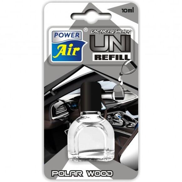 Power Air univerzális autóillatosító utántöltő, sarkvidéki fa aroma, 10ml Gyémánt alakú autóparfüm finom illatok választékával. Egyszerű használat: vegye le a műanyag kupakot, nyomja össze a fa fedelet, és lazán akassza az autóba. ÚTMUTATÓ: Csavarja le a kupakot és távolítsa el a tömítést. Csavarja be és húzza meg a fedelet. A gyűrűs zsinór segítségével csom
