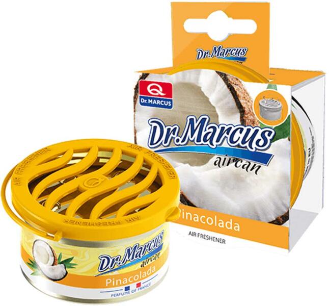 Dr Marcus Aircan - Pinacolada - Piña Coladá konzerv illatosító, 40g Igazi francia parfüm tartalommal rendelkezõ konzerves légfrissítõ. A francia parfümnek köszönhetõen a legtermészetesebb illatokat adja vissza a légfrissítõ. Kiváló minõségű parfümösszetevõknek köszönhetõen akár az illatokra érzékenyebbek is használhatják, de az allergia veszély esetlegesen fennál
