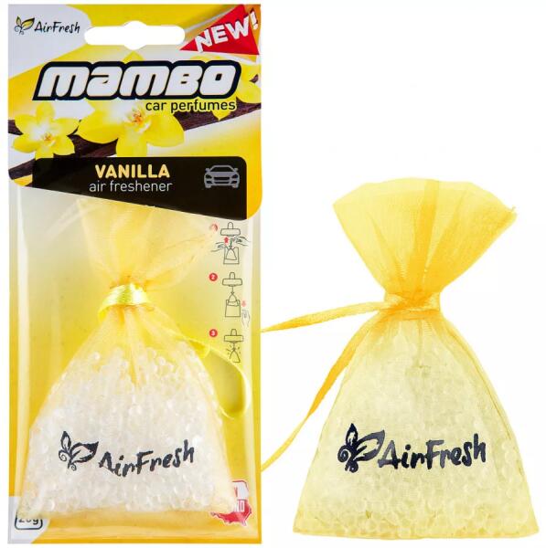 A MAMBO medál egy kiváló minőségű autó légfrissítő, átlátszó zacskó formájában, belsejében granulátummal. Az ebből a sorozatból származó medálok extravagáns illatokkal rendelkeznek, amelyek rendhagyó illatot visznek autónk belsejébe.