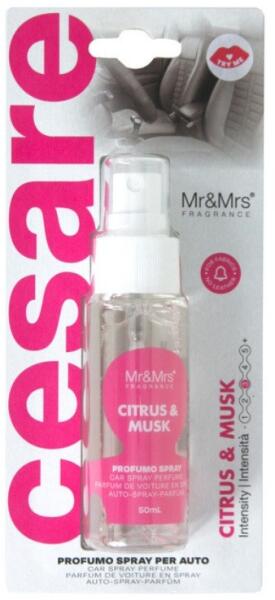 Autós légfrissítő spray formájában. Eltávolítja a kellemetlen szagokat, nem hagy foltokat és hosszan tartó frissességet biztosít. A Citrus & Musk (Citrus és pézsma) válogatott gyümölcsillatok és orientális fűszer keveréke (bergamottt, citrom, bors és fahéj). Vörös gyümölcsök gyümölcsös íze. A hatóanyag az illatolaj, amely aktív szagelnyelő molekulákat tartal