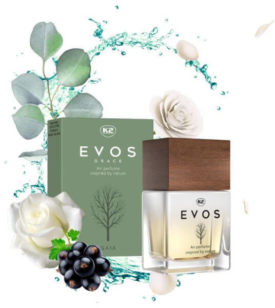 A K2 EVOS GRACE autóparfüm a természet ihlette, egyedi illatjegyek szokatlan kompozíciója, amelyet a modern autók belső terébe terveztek. Fújva: Az EVOS GRACE aroma az autó belsejébe permetezve eleganciát és kifinomultságot kölcsönöz az autónak, és növeli a benne való tartózkodás kényelmét. A vezetés élménnyé válik, pihenéssé és meneküléssé a luxus kifinomult vi