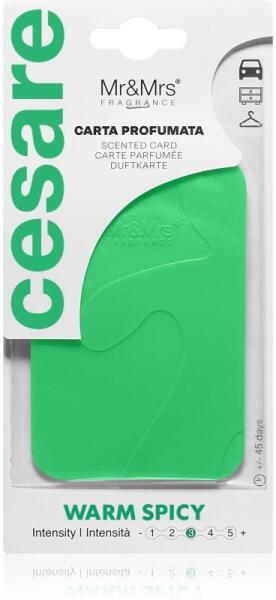 Mr & Mrs Fragrance Cesare Warm Spicy, 1 db, Szekrényillatosító Illatok lakásba, A felakasztható Mr & Mrs Fragrance Cesare Warm Spicy autóillatosító autók és kisebb helyiségek illatosítására szolgáló ideális kiegészítő. Praktikus akasztójának köszönhetően fel tudja akasztani a kívánt helyre, így utazáskor folyamatosan élvezheti kellemes aromáját. Tulajdonság