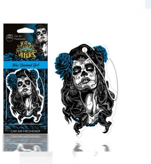 MUERTOS Blue Diamond Girl autóillatositó A termék leírása Az AROMA CAR évek óta a piac egyik legvásároltabb légfrissítője. A Franciaországban gyártott illat legfőbb előnye a hatékonyság, amely akár több hétig is eltart, és kellemes illat. Tökéletesen semlegesíti a kellemetlen szagokat, a cigarettafüstöt és másokat.