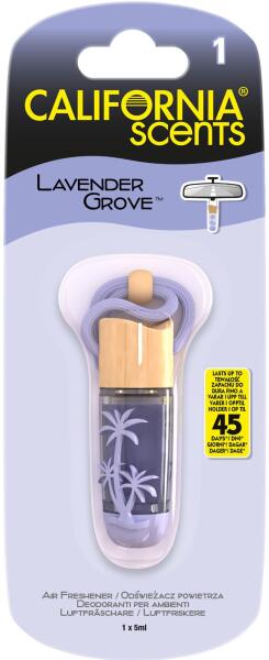 California Scents Lavender Grove A California Scents merész illataival a nyugati part csábító illatait hozhatja el autójába. Egyszerűen kösse a függő fiolát a visszapillantó tükörre vagy más kívánt helyre, más felületektől távol. Hagyja lógni, és lélegezzen nyugodtan, tudva, hogy minden egyes lélegzetvételében ott van Kalifornia esszenciája. Hagyja lógni akár 45 napig