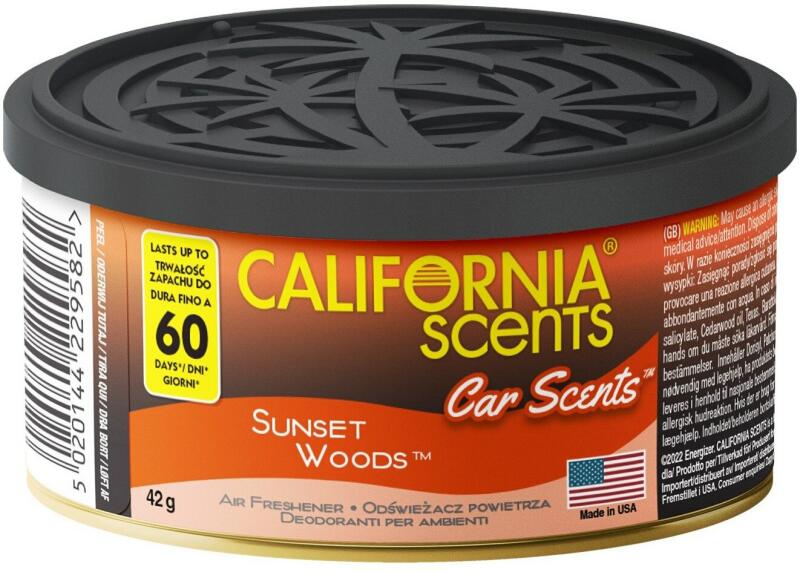 California Scents Sunset Woods A California Scents autós légfrissítő ideális az autó levegőjének felfrissítésére! A California Scents autós légfrissítő termékcsalád organikus, biológiailag lebomló, újrahasznosítható és környezetbarát termékekből készül. A California Scents kapszulák szilárd formában tartalmaznak légfrissítőt, környezetbarátok és állítható v