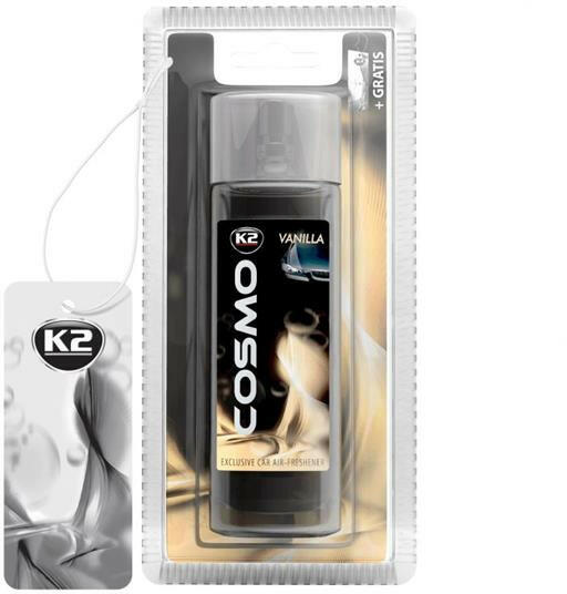 K2 | COSMO Illatosító parfüm | Vanilla Bemutatjuk a leghatékonyabb autóillatot parfümben. Mindazoknak, akik szeretnék érezni az egyedi aromát autójuk belsejében. A K2 COSMO-nak köszönhetően felfedezheti a szokatlan illatok világát, amelyeket az autóipar iránti szenvedély ihletett. A légfrissítők finom összetétele semlegesíti a nemkívánatos szagokat. Felhasználási módj