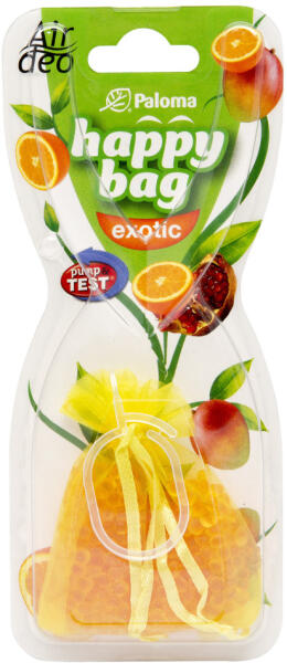 Illatosító - Paloma Happy Bag - Exotic Ízléses kis tasak. A tasak belsejében illatgolyócskák találhatók, melyek több hétig kifejtik hatásukat. Használható lakásban, autóban. Típus:Happy Bag ExoticHasználható:minimum 4 hétigMennyiség:1 db