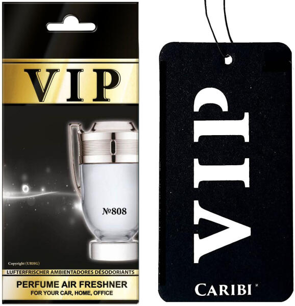 Caribi VIP papírfilcen átitatott, prémium, designer és niche illatokat idéző parfüm alapú lapkás illatosító, mely az autóillatosítók között nagyon kedvelt. Férfi, női és unisex illatok is fellelhető a kínálatban. Akár 20 napos illatfelhőt varázsol az autó belterébe. Az illatosító elnyomja a kellemetlen szagokat és kiváló illatot hagy maga mögött. Visszapillantó t