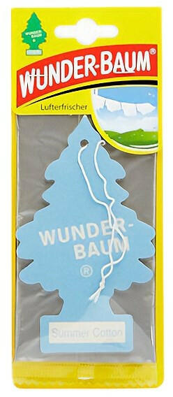 Autó illatosító WUNDERBAUM Summer cotton A Wunderbaum fenyő alakú illatosító, helység és és autó illatosítására.