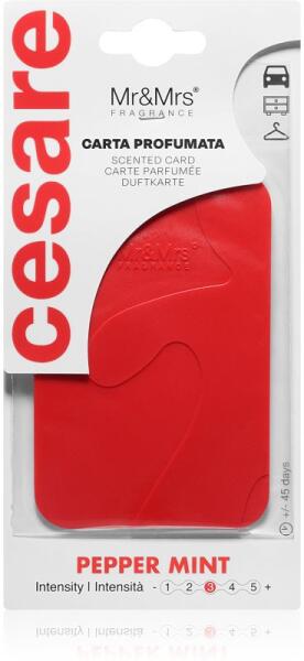 Mr & Mrs Fragrance Cesare Peppermint, 1 db, Szekrényillatosító Illatok lakásba, A felakasztható Mr & Mrs Fragrance autóillatosító autók és kisebb helyiségek illatosítására szolgáló ideális kiegészítő. Praktikus akasztójának köszönhetően fel tudja akasztani a kívánt helyre, így utazáskor folyamatosan élvezheti kellemes aromáját. Tulajdonságok: gyümölcsös
