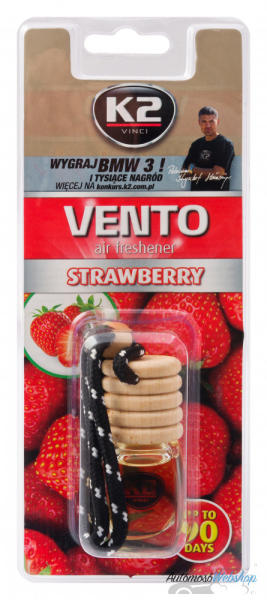 A K2 Vento egy elegáns autó illatosító, modern kialakítással és parafa dugóval. A 8 ml-es kiszerelésnek köszönhetően a K2 Vento a legkeresettebb légfrissítő a K2 kínálatából. Minden illatnak más a színe. Az élénk citromsárga szín minden autó belsejét felvidítják. A K2 Vento autó légfrissítőt úgy alakították ki, hogy az illatot fokozatosan, minimális mennyiségb