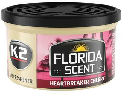 K2 | FLORIDA Illatosító konzerv | Szívtipró Cseresznye A Heartbreaker Cherry garantáltan jelölt az új kedvenc autóillatára. Nosztalgikus utazásra visz a nyári gondtalanság idejébe, tele gyümölcsökkel teli kert illatával, lemenő napsütéssel és cseresznyefagylalttal. Kellemes és aromás karaktert kölcsönöz az autós utazásnak, az autóba ültetés és az aromás cseresznyei