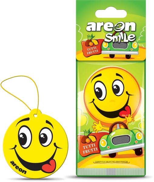 Az AREON DRY SMILE illat egy mosolygós arc megjelenésű autós légfrissítő.