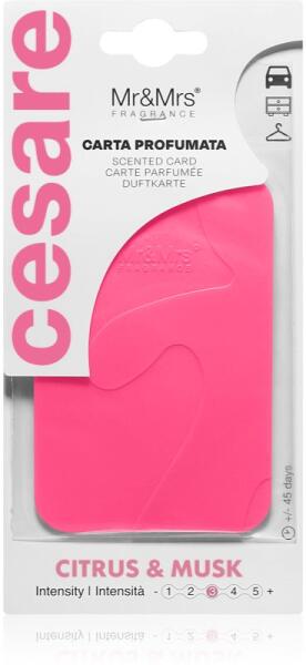 Mr & Mrs Fragrance Cesare Citrus & Musk, 1 db, Szekrényillatosító Illatok lakásba, A felakasztható Mr & Mrs Fragrance Cesare Citrus & Musk autóillatosító autók és kisebb helyiségek illatosítására szolgáló ideális kiegészítő. Praktikus akasztójának köszönhetően fel tudja akasztani a kívánt helyre, így utazáskor folyamatosan élvezheti kellemes aromáját
