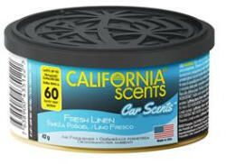 A Autóillatosító konzerv, 42 g, CALIFORNIA SCENTS Fresh Linen (AICS010) A California Scents Car 100%-ban ökológiai illóolajokon alapul. Az ilyen típusú csomagolásnál nem áll fenn a műanyagok/ műszerfal károsodása a parfüm/gél szivárgása miatt. Minden pléhdoboz ingyenes illat intenzitást-szabályzót kap, az illat az autóban akár 60 napig is kitarthat! Friss átható illat fr