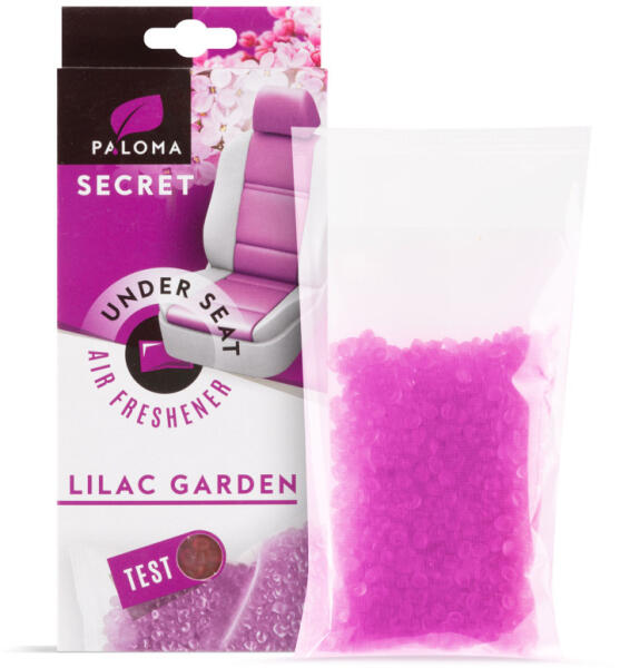 Illatosító - Paloma Secret - Under seat - Liliac garden - 40 g Kiváló termék azok számára, akik nem kedvelik a visszapillantó tükörre felakasztott illatosítókat, mégis szeretnének friss illatot autójukba. A méltán sikeres, Paloma HappyBag termékcsaládból ismert műanyag golyós kiszerelés, melyet az ülés alá helyezve rejtve marad, mégis hosszantartó kellemes illatot bizto