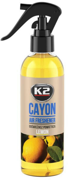 A K2 Cayon gondosan kiválasztott receptúrája semlegesíti a kellemetlen szagokat és aromás illattal tölti meg a belső teret. Egy 250 ml-es palack több mint 700 használathoz elegendő. Az intenzív kompozíciók hosszantartó illatot biztosítanak, mely sokáig a helységben marad. Egyedülálló, univerzális légfrissítő nagyon intenzív aromával , autók belsejében vagy más helyis