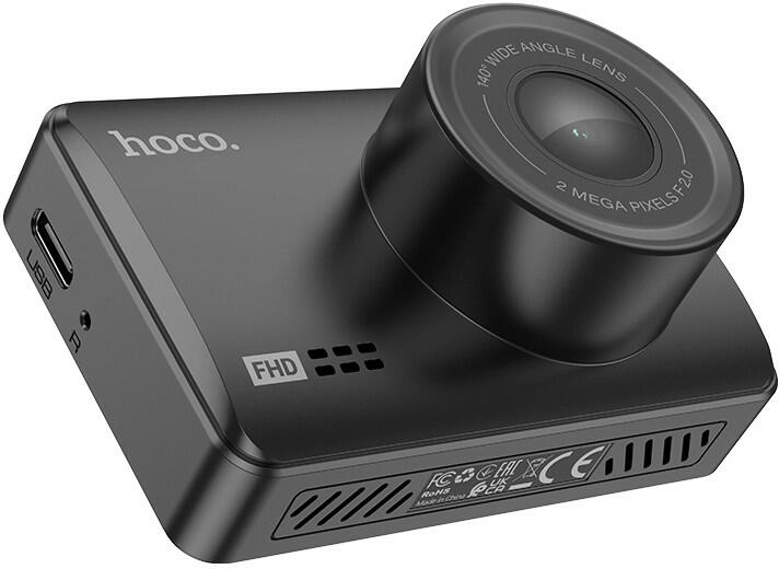 Hoco Driving DV2 car camera with a GC2053 sensor with a resolution of 2 million pixels, which records video in 1080P resolution at 30 frames per second, which allows you to obtain smooth and bright recordings. The built-in 2.45-inch IPS HD display allows you to constantly monitor the situation around the vehicle, and a wide viewing angle of 140 degrees provides a wide field of view. The car camera