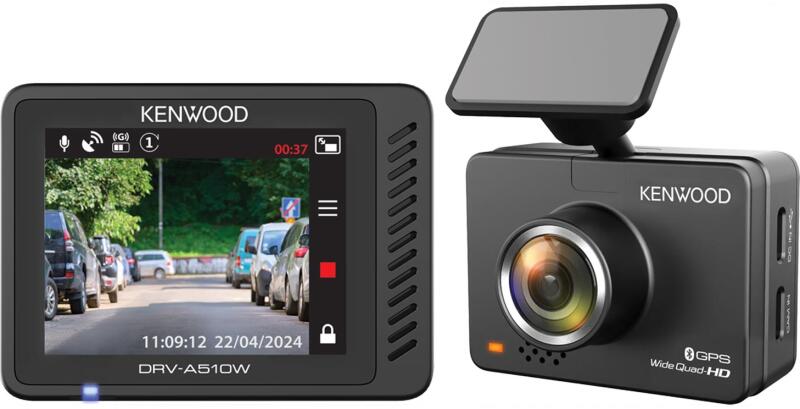 Kenwood DRV-A510W 2K (2560x1440px) menetrögzítő kamera Wifi csatlakozással. 3D gyorsulásérzékelővel, GPS-el, 2" színes TFT kijelző. Extra kompakt méret. WDR, automatikus fényerő kompenzáció, beépített akkumulátor (szuper kapacitor), öntapadós tartó konzol. A rögzített anyag microSD memóriakártyára kerül, időbélyeggel ellátott és a mellékelt lejátszóprogrammal teki