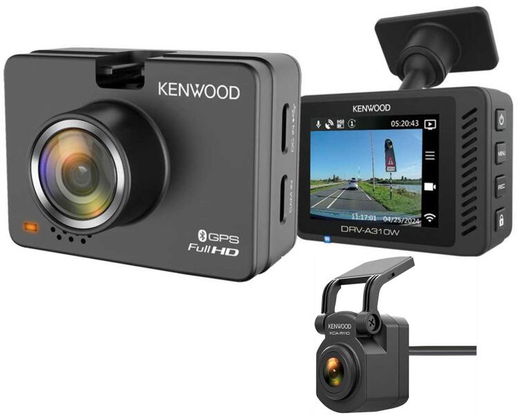 Kenwood DRV-A310W Full HD menetrögzítő kamera Wifi csatlakozással, KCA-R110 Full HD hátsó kamerával. 3D gyorsulásérzékelővel, GPS-el, 2" színes TFT kijelző. Extra kompakt méret. WDR, automatikus fényerő kompenzáció, beépített akkumulátor (szuper kapacitor), öntapadós tartó konzol. A rögzített anyag microSD memóriakártyára kerül, időbélyeggel ellátott és a melléke