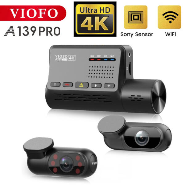 A VIOFO A139 PRO autókamera hátsó és belső kamerával nagy felbontású, akár 4K-s felvételt tesz lehetővé, a legújabb SONY Starvis 2 IMX678 technológiával, 4x gyorsabb 5 GHz-es Wi-Fi-vel, GPS-szel, hangértesítéssel és sok más funkcióval.