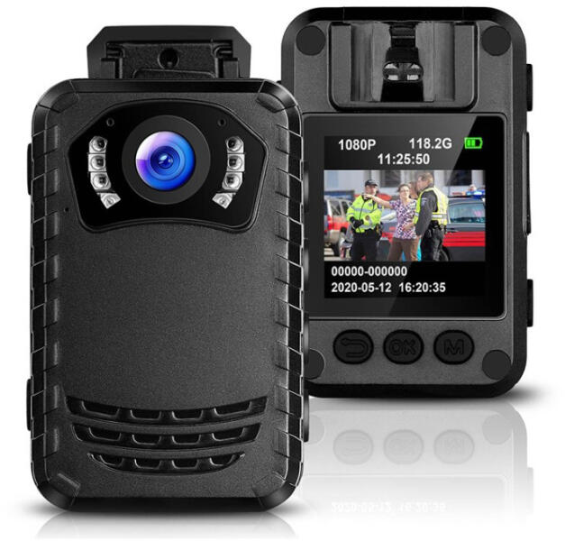 Kis rendőrségi kamera Full HD felbontással, 1,5"-os kijelzővel, éjjellátással, memóriakártya-támogatással és IP66-os vízállósági szabvánnyal.