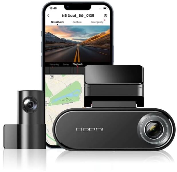Wideorejestrator DDPAI N5 Dual DDPAI N5 kettős videorögzítő A DDPAI N5 Dual 4K Radar videorekorder egy olyan fejlett készülék, amely a csúcstechnológiát praktikus funkciókkal ötvözi, hogy a legmagasabb szintű biztonságot és kényelmet nyújtsa vezetés közben. Két 4K UHD kamerával felszerelve elöl és 1080P-vel hátul, páratlan képminőséget biztosít minden közlekedési es