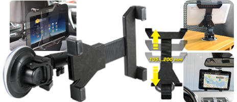3in1 autós és otthoni készüléktartó, amely professzionális rögzítést biztosít a 7… 10,1 hordozható készülékekhez. Ideális táblagép, könyvolvasó, monitor, navigáció, rögzítéséhez. Autóban alkalmas a fejtámlára vagy szélvédőhöz, lakásban pedig az asztalon vagy polcon történő rögzítéshez. Tulajdonság: szín: fekete befogható készülék mérete: 105 - 200 m