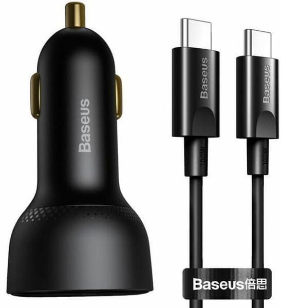 Baseus autós töltő két kimenettel (USB-A, USB-C), 100W-os teljesítménnyel és 5A áramerősséggel. Gyors és hatékony töltést garantál bármely hordozható eszköz számára. USB-C - USB-C kábel tartozék, 1 m hosszú és 100W teljesítményű. Két kimenet: USB-A, USB-C , amelyek 100W teljesítményt és 5A áramot biztosítanak, garantálják két hordozható eszköz egyidejű gyors