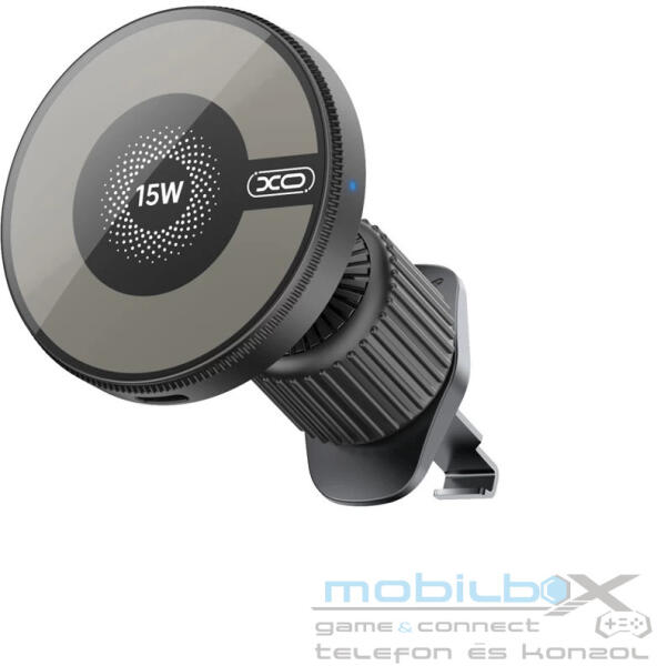 XO mágneses autós tartó szellőzőnyíláshoz CX025 vezeték nélküli induktív töltővel 15W fekete Az XO CX025 egy mágneses tartó 15 W-os vezeték nélküli töltéssel, amely egy szellőzőnyílásra van szerelve. Kis méreteivel tökéletesen illeszkedik bármilyen térbe.