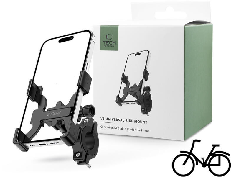 - A Tech Protect legkorszerűbb kerékpárra szerelhető telefontartója a V3, amely ideális az okostelefon biztonságos rögzítéséhez a kerékpár kormányára. - Kiváló minőségű anyagokból készült, hosszú élettartamot és sérülésállóságot biztosít. - A tartó állítható karokkal rendelkezik, hogy különböző méretű okostelefonokhoz illeszkedjen. - Az erős bilincsek st