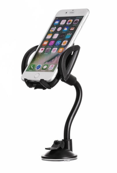 Univerzális autós telefon tartó szélvédőre flexibilis hosszú karral Az üveghez rögzítheti, és bármilyen szögben beállíthatja, hogy tökéletes láthatóságot biztosítson. Az univerzális klipsz a legtöbb okostelefonhoz alkalmas, és forgatható fejjel rendelkezik, így vízszintes és függőleges pozícióban is beállíthatja okostelefonját. Válltávolság: max. 11,5 cm.
