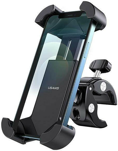 USAMS US-ZJ064 - a kormányra szerelhető kerékpártartó. Kiváló minőségű ABS / PC / szilikon anyagokból készült, rendkívül tartós, könnyű és rugalmas. A tartó fogantyúkkal rendelkezik, amelyeket a telefon méretéhez igazíthat. A 360 fokban mozgatható fejnek köszönhetően a telefon pozícióját az Ön igényeihez igazíthatja. A fogantyú úgy lett kialakítva, hogy kerékp