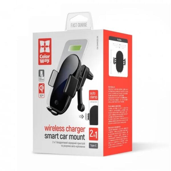 MOBILTARTÓ AUTÓBA ColorWay autós mobiltartó beépített AutoSense 10W vezeték nélküli töltővel van ellátva mobil eszközökhöz. Rögzítés az autó szellőzőrácsához. Könnyű felrakás és kezelés. A beépített töltő gyorsan