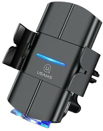 USAMS US-CD133 Automatikus autós tartó gyors 10 W-os vezeték nélküli töltéssel, a szellőzőrácsra szerelve. Az intelligens chip használatának köszönhetően a fogantyú felismeri a készüléket és automatikusan rögzíti a karokat, valamint azonosítja a gyors induktív töltés lehetőségével rendelkező készülékeket. A vezeték nélküli töltés nélküli telefonok az oldals