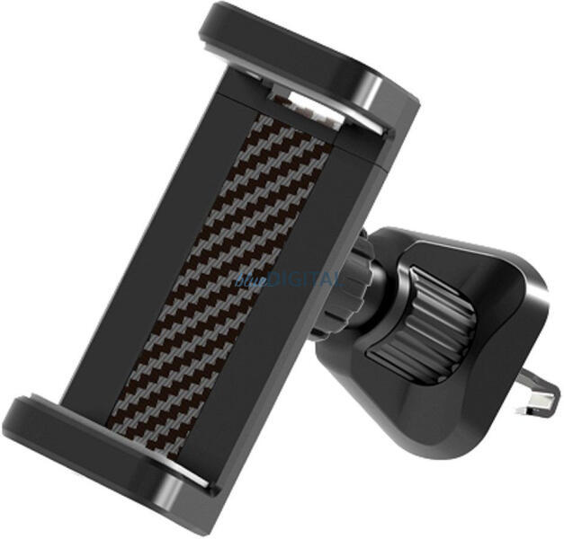 Univerzális autós tartó a szellőzőnyílásra szerelve, modern dizájnnal. A tartozék okostelefonokkal való használatra szolgál. A karokon található szilikonbetéteknek köszönhetően biztonságosan tartja a készüléket a karcolások veszélye nélkül. A tartó a légbeömlő rácsra szerelhető. A bilincsek biztonságosan tartják az okostelefont a tartóban. Nem korlátozza a tölt