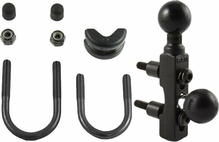 Ha pl. navigáció és kamera, akkor csak egy fogantyúra van szüksége, amelynek két csapja van. RAM -tartó motorkerékpárhoz vagy robogóhoz a fék- és kuplungkar bal vagy jobb hüvelyében, egy 1 "-os és egy 1" -os kivehető csapszeggel. A furatok távolságának 19 - 31,75 mm között kell lennie. A szabadalmaztatott 1 hüvelykes golyóscsap kiváló minőségű gumiból készült, hogy