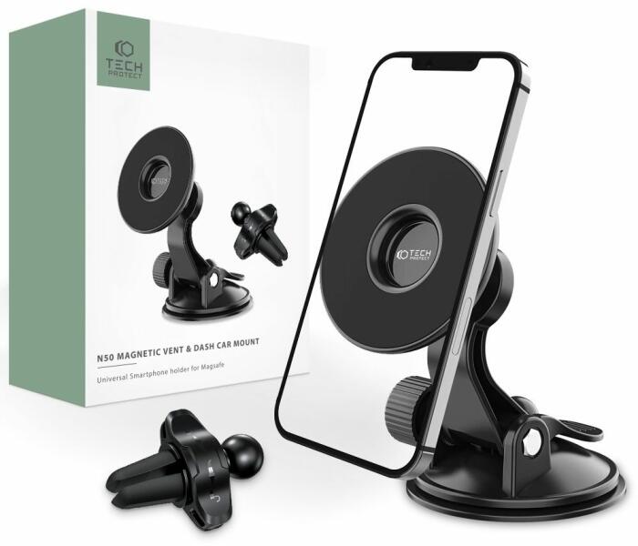Az N50 a Tech-Protect mágneses autós tartójának legújabb ajánlata, amelyet a Magsafe technológia felhasználóinak terveztek. A stabil, kis szerkezet nem befolyásolja a láthatóságot vezetés közben, a beépített erős mágnes pedig gyors és biztonságos rögzítést garantál. A mozgatható kar és a 360° -ban elforgatható fej nagyszerű konfigurációs lehetőségeket tesz lehető