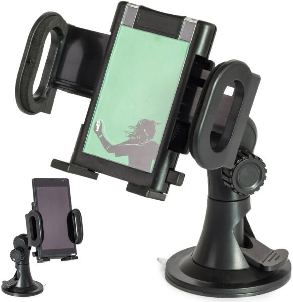 Univerzális autós tartó, autóablakra szerelhető. A tapadókorong nagyon szorosan tart, és speciális rögzítési rendszerrel rendelkezik, amely megakadályozza, hogy leessen. A tartó beépített vállszélességű, gombbal aktiválható mechanizmussal rendelkezik, és külön helyet kapott egy fénykép számára. Modern rendszerrel rendelkezik, amely lehetővé teszi a dőlésszög beáll