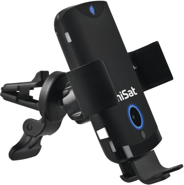 Vezeték nélküli autós töltő, TechniSat, SMARTCHARGE 2 Teljesítmény: 10 W Infravörös érzékelő az automatikus nyitáshoz Az állvány 4,7-6,4 hüvelyk átlójú és 65-100 mm széles telefonokhoz és táblagépekhez alkalmas Szélvédő tapadókorong mellékelve ABS és polikarbonát Fekete szín