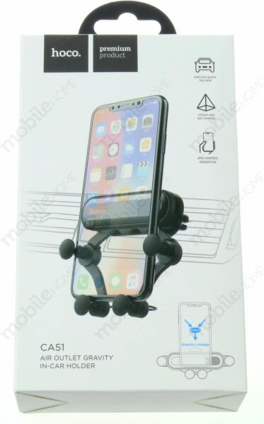 Állítható mobiltelefon-tartó - HOCO CA51. Lehetővé teszi, hogy vezetés közben kényelmesen kezelhesse okostelefonját. A termék rendkívül univerzális, és simán alkalmazkodik a készülék alakjához. A szellőzőrácshoz rögzítve. Kiváló minőségű összetevőkből - szilikon + ABS , hosszú távú és biztonságos használatot biztosít, és ellenáll a sérüléseknek. A kompa